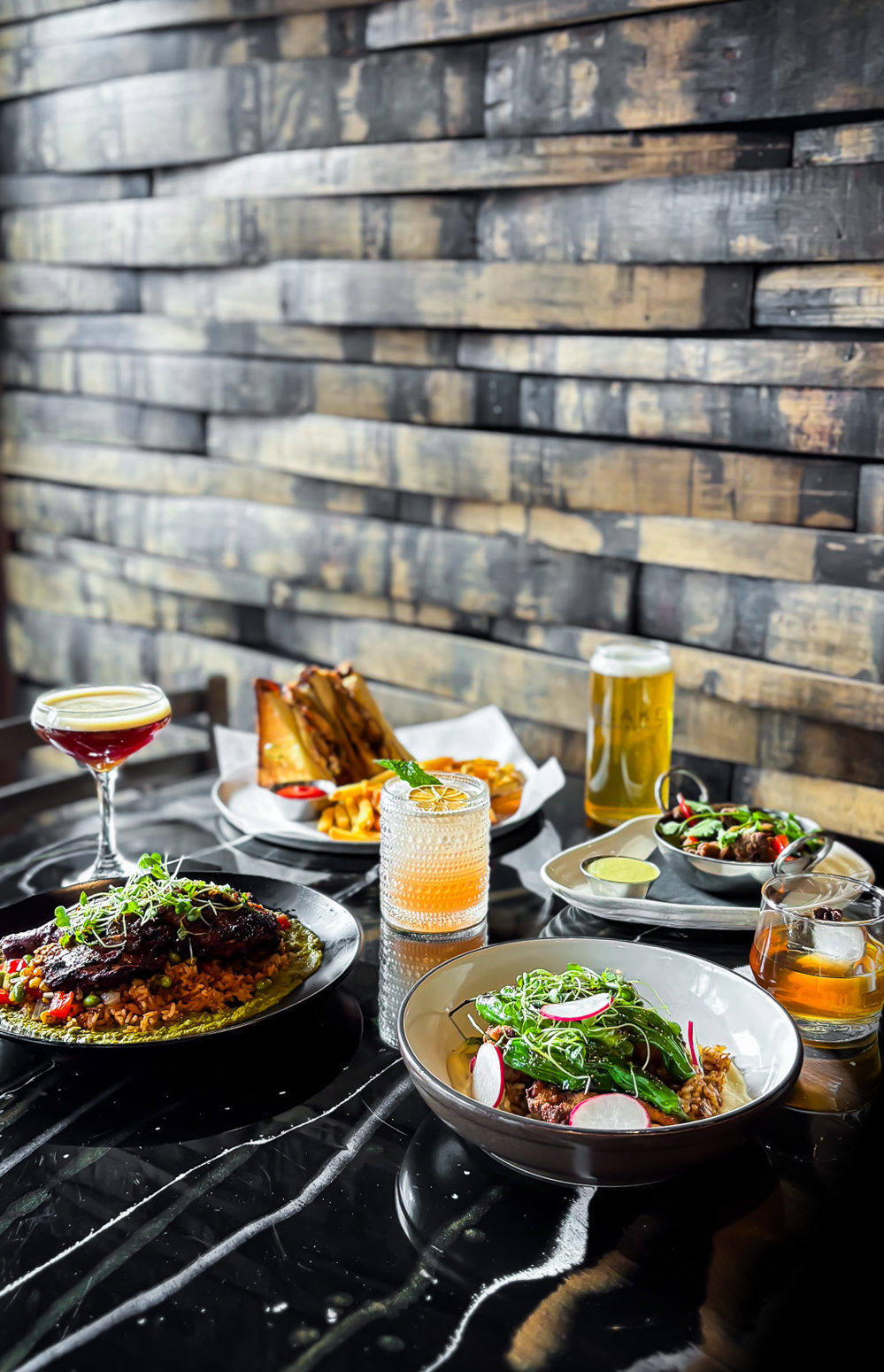 Award Winning Chic Modern Industrial converted car garage, offering creative international fusion food & drinks. Great in-house spirits and house brewed beers on tap!