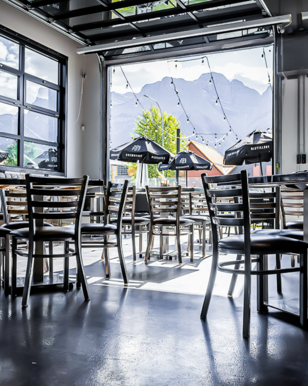 Tasting Room – Mountain views and distillery backdrop (20 seated / 30 standing)